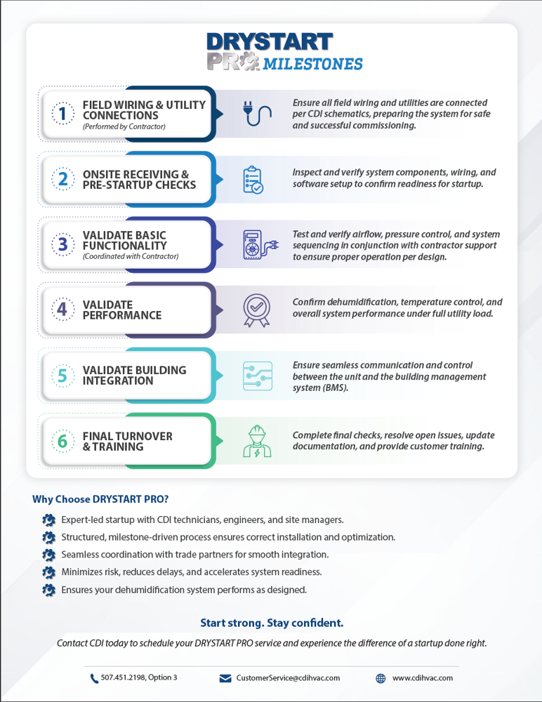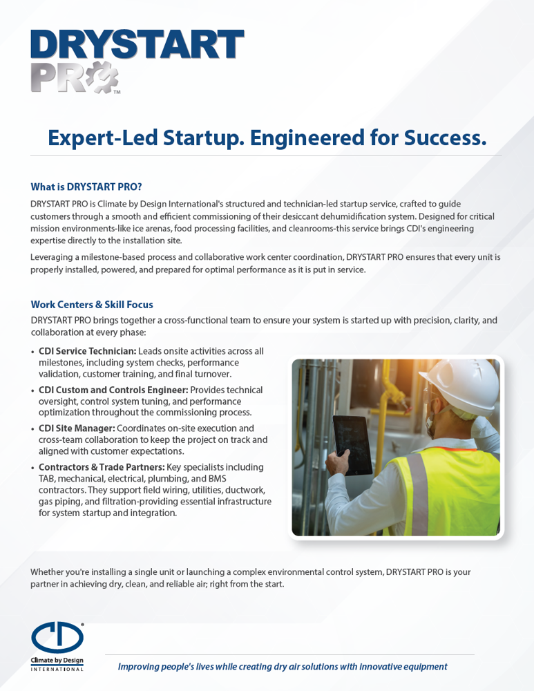 CDI designs and manufactures desiccant dehumidifiers and critical process air handlers for a wide array of applications including: lithium battery manufacturing, ice arenas, hospital surgical suites, and food processing facilities.